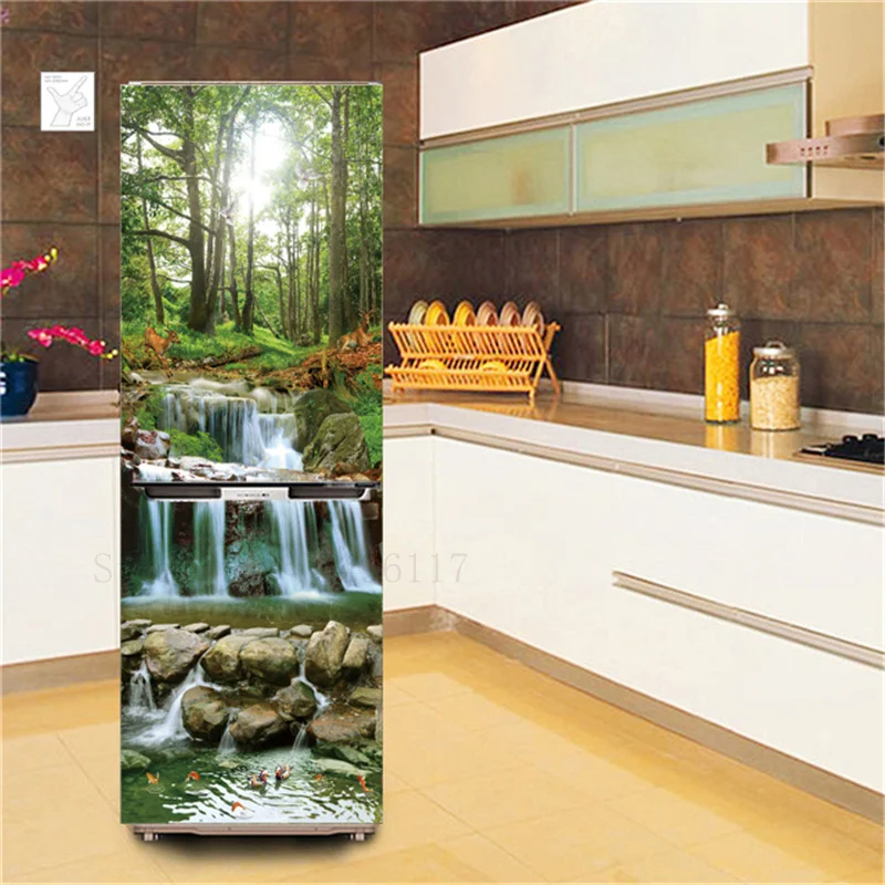 Отзывы о Natural Scenery Wallpaper Refrigerator Sticker 3D Peel & Stick Vinyl Fridge Door Cover Decor Kitchen Mural Flower Posters | Дом и сад