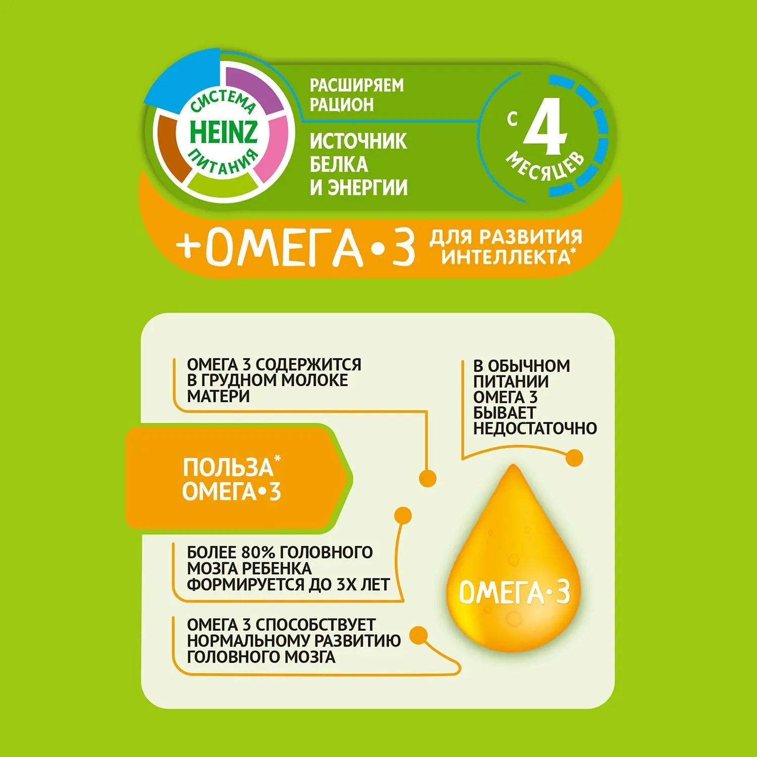 *Каша Heinz содержит докозагексаеновую кислоту (DHA), которая является одним из необходимых компонентов для развития головного мозга.
