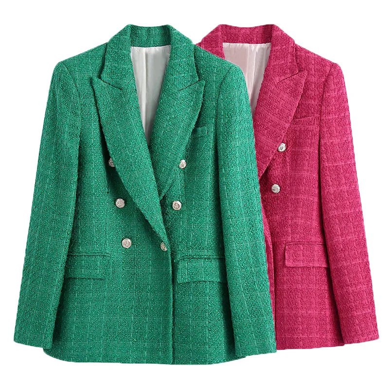Отзывы о Женский твидовый двубортный Блейзер винтажная верхняя одежда для офиса с