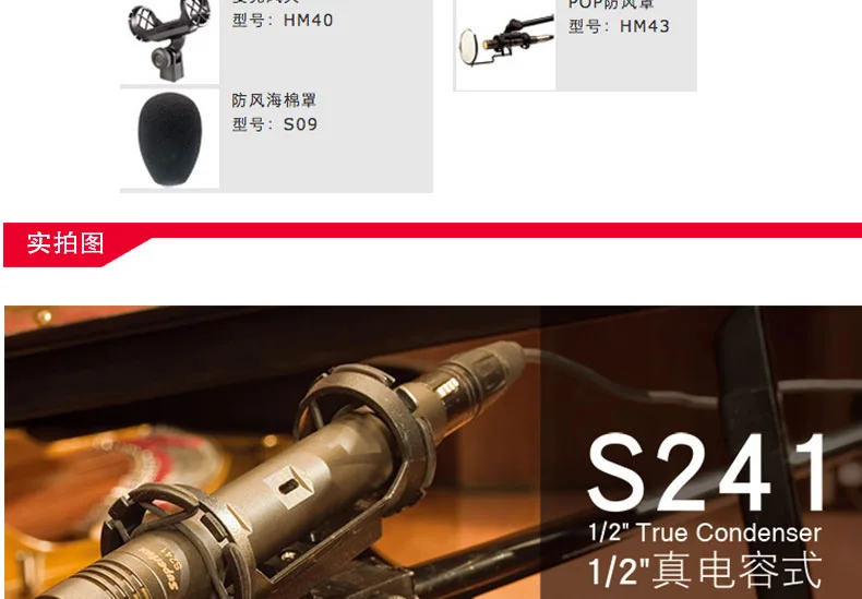 S2411/2 "настоящий конденсаторS241 высоко ценится ведущими звукоинженерами, потому что он основан на профессиональном мастерстве и высоких стандартах качества. S241 является 1/2 "goldevaporated Мембранный Микрофон с взаимозаменяемой капсулой и низким уровнем шума микрофон предусилитель цепи. Его модульная конструкция капсулы позволяет пользователю при необходимости переходить от кардиоида к omni polar pattern. S241 идеально подходит для захвата переходных звуков от акустических гитар, барабанов snare, головных уборов и накладных головок. Все эти функции делают S241 отличным инструментом для арендных компаний в качестве стандартного оборудования.Особенности:1/2 ”3мкм тонкая пленка диафрагмыПлоский и широкий откликМодульная конструкция капсул-Настройки пусковой площадки 10 и-20 дБ2-й заказ 75 Гц и 150 Гц переключаемые низкие фильтрыЛазерная гравировка серийная нумерацияСпецификация:Тип: настоящий конденсатор, Ø1/2 " (Ø12.7 мм)Полярный узор: кардиоидный, omni (вариант)Амплитудно-Частотная характеристика: 20-20000 ГцНизкочастотный фильтр: 75 Гц, 150 ГцПодкладка: -10, -20 дБЧувствительность: -35 дБВ/па (17,8 мВ)Выходное сопротивление: 200 ΩМин. Подъемный Вес сопротивление: 1000 ΩСоотношение S/N: 78 дБЭквивалентный Выходной шум: 16 дБМакс. SPL: 143 дБ SPLДинамический диапазон: 127 дБТребования к питанию: 48 В постоянного тока, 3 мАОтделка: серый титанРазъем: XLR3MРазмеры: Ø22 × 155 мм (Ø0.87 "× 6,1")Чистая Вес: 220g (7,8 oz)Аксессуары:HM40 ударное крепление; YA2 Резьбовой Адаптер; S09F ветровое стекло; HM43 металлическая сетка поп-экран Упаковка:Цветной защитный чехол для переноски A3Применение:Профессиональная студия записиЗапись в реальном времениВокалСтруныАкустическая гитараПианиноЛатуньДеревянные ветрыПеркуссии