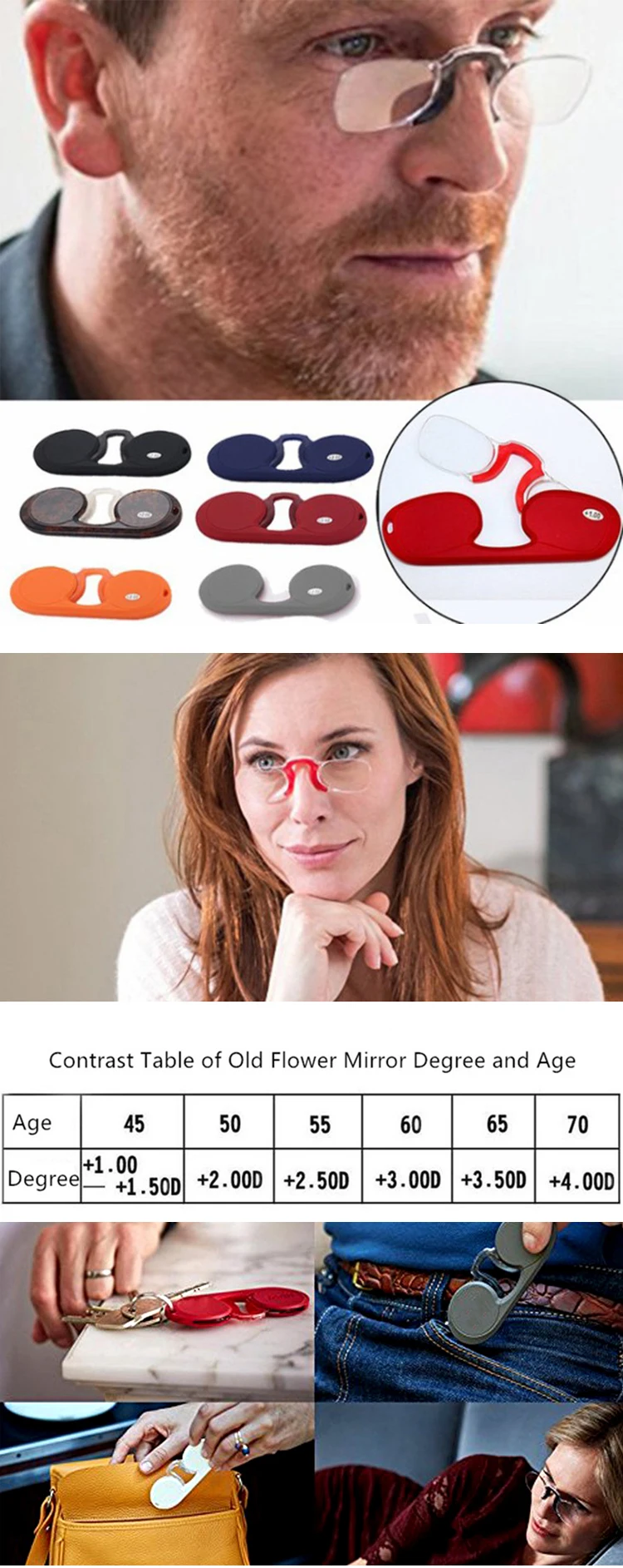 Название продукта: портативный силиконовый зажим-нос пресбиопические очки