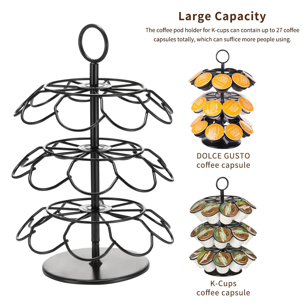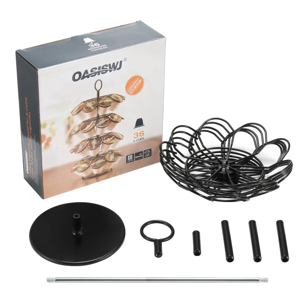 Практичный Держатель для капсул с кофе вращающаяся подставка для капсул Nespresso dolce&gusto K-Cup Coffee Capsules 1. Этот продукт очень подходит для хранения кофейных капсул. Он имеет отличную функцию экономии пространства на кухне и может легко отображать все кофейные капсулы. 2. Подходит для хранения кофейных коробок в домах, офисах, ресторанах или коммерческих салонах. 3. Стойка для хранения может держать 36 кофейных капсул. Он имеет нескользящее войлочное основание, которое является стабильным и не легко скользить. 4. Вращающаяся конструкция: в нижней части изделия имеется круглый поворотный стол с поворотом на 360 градусов, который может вынуть капсулу сверху и снизу. 5. Высококачественный Материал: изготовлен из высококачественной нержавеющей стали, обладает хорошими антикоррозийными свойствами и увеличивает срок службы. Описание: Этот продукт-вращающийся на 360 градусов держатель для кофейных капсул, изготовлен из прочного и прочного материала, легко хранить и отображать. Характеристики: Размер: 18,7*18,7*36,5 см Материал: железная проволока Стиль: простой Посылка включает в себя: 1 * держатель для кофейных капсул