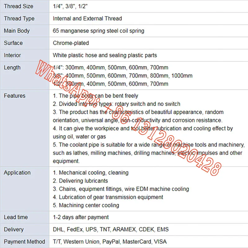 Материал: металлическая нить Внешний диаметр: 1/4 ",3/8",1/2 "; Диаметр сопла: Внешний: 9 мм/0,35" Внутренний: 6 мм/0,24 "тип резьбы: Мужская резьба и женская резьба Тип резьбы: Мужская резьба и женская нить |