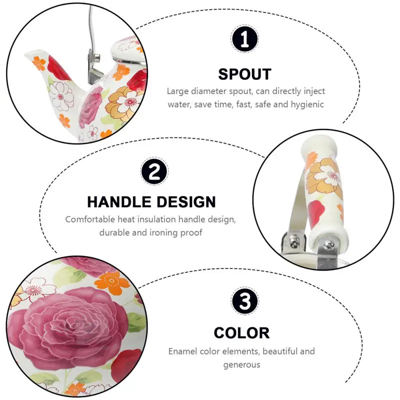 This item is a water kettle, manufactured with premium enamel material, so that it can serve you for a long time. Quality material and large capacity can ensure its durability and practicability. It is perfect for you to heat water, which boils water very quickly, reducing waiting time.Features