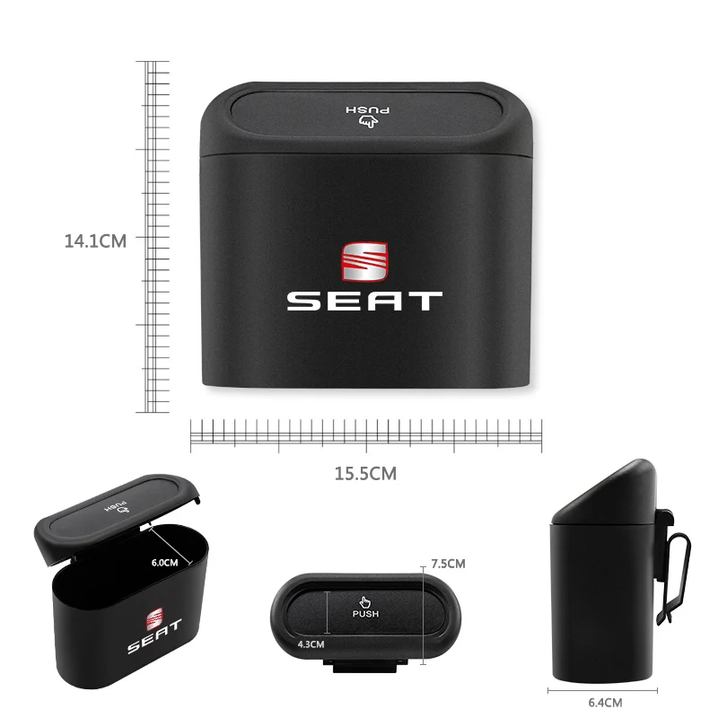 1 шт., Универсальная автомобильная крышка с откидной крышкой, черная мусорная корзина для салона, органайзер для сиденья Leon Ibiza Ateca Sportcoupe Alhambra Exeo Altea Arona Toledo Tarraco