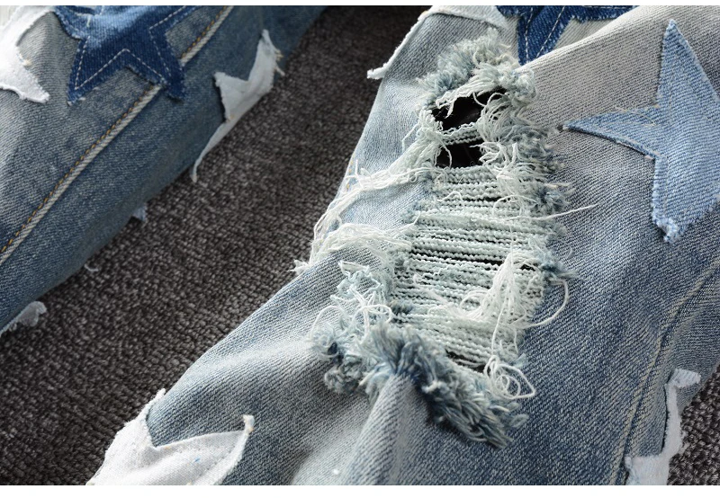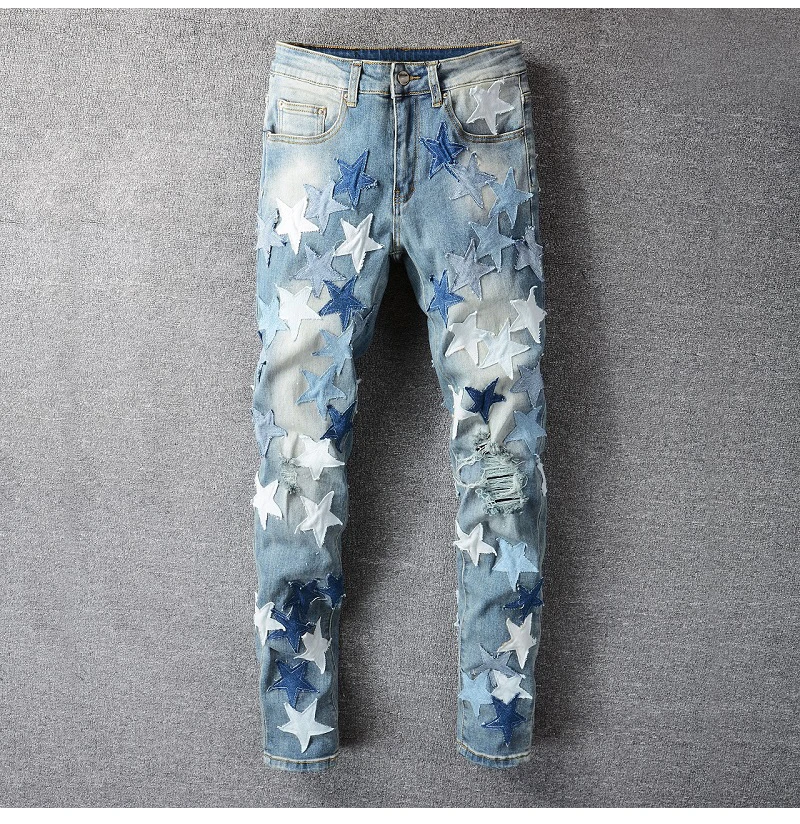 Отзывы о Мужские рваные джинсы с нашивками в виде звезд Уличная одежда Лоскутные брюки