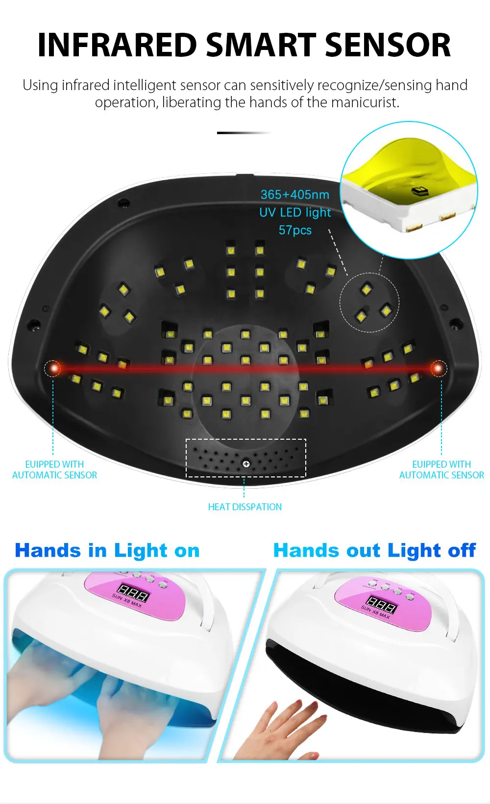 Отзывы о 256W SUN X8 Max Lampara УФ-светодиодная лампа для сушки ногтей гель-лак с 57 светодиодами