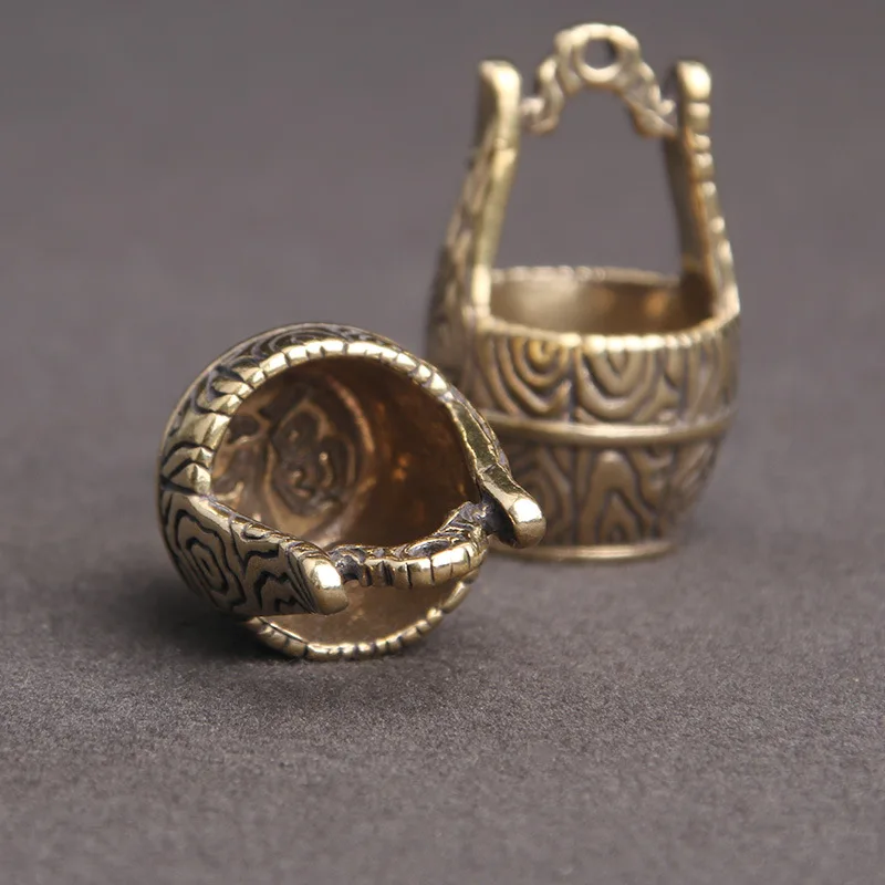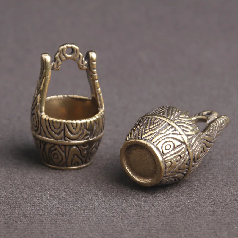 Винтажная латунная бронзовая скульптура, статуэтки, статуэтки ведра, старая модель мебели, счастливое ведро, миниатюрные креативные брелки, кулонОписание продукта: