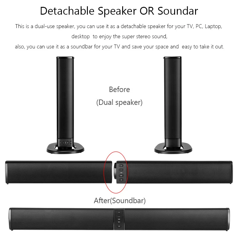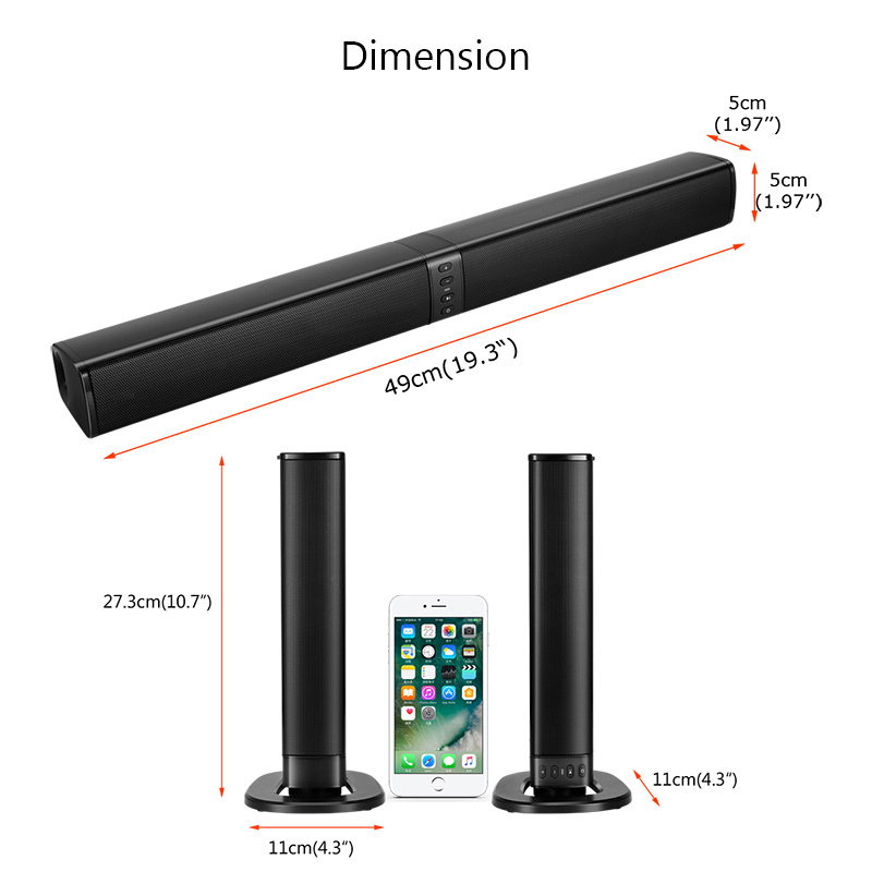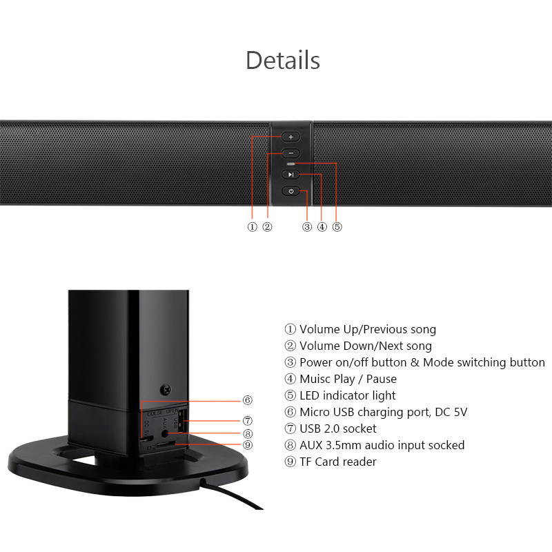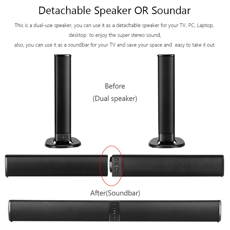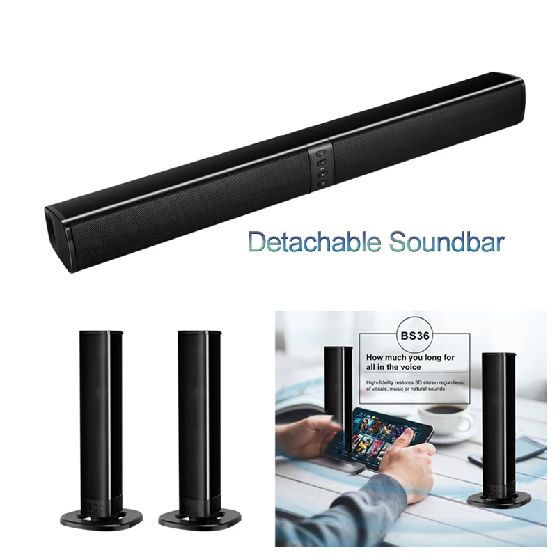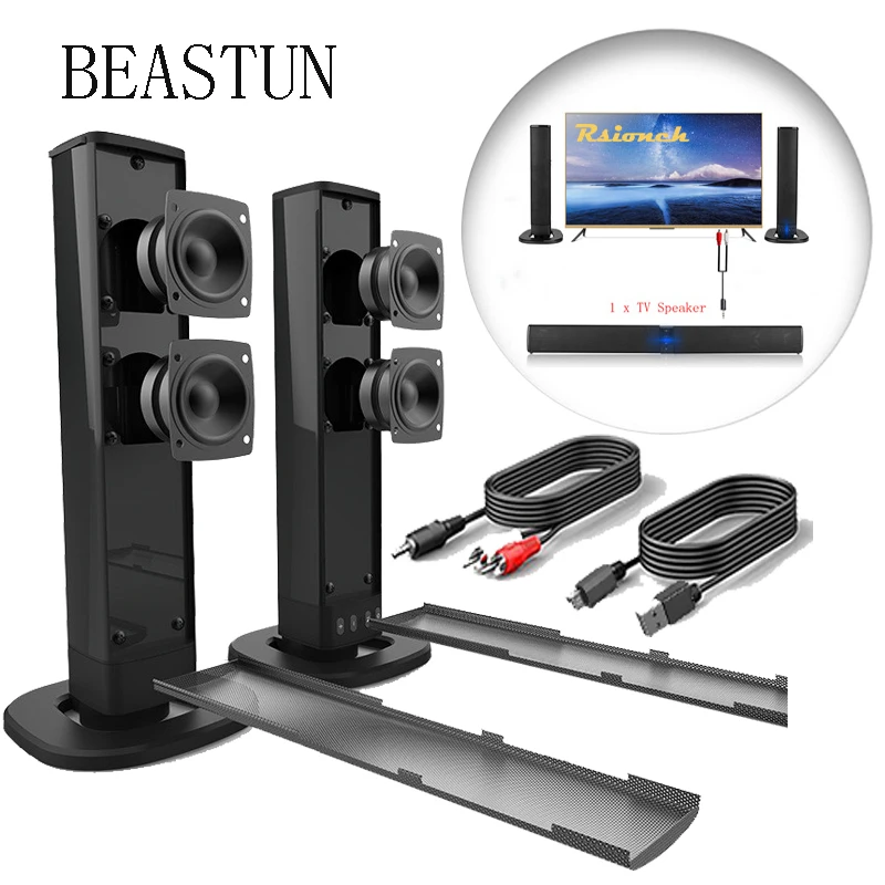 BEASTUN Съемный Bluetooth ТВ динамик компьютер настольный громкий динамик подставка звуковая панель проводной беспроводной динамик s AUX TF USB аудио вВерсия Bluetooth: 4,2Цвет: черныйТип батареи: полимерный аккумулятор 18650Емкость аккумулятора: 2000 мАПрименение Время работы: около 2,5 часовВыходная мощность: 8 Ω 5W x 4Частотная характеристика: 20 Гц-20 кГцОтношение сигнал-шум: +/-80 дБРасстояние передачи: 8-10 мТип зарядки: MicroUSB 5 В/1A-2AХарактеристика:-Версия Bluetooth V4.2-Интерфейс USB, функция аудиовхода u-диска-Функция аудиовхода tf-карты-3,5 мм аудиовхода-Функция fm-радио-Используйте порт micro charging-Может контролировать сложение и вычитание громкости-Управляйте песнями вверх и вниз-Может управлять песней пауза и воспроизведение-Использование подключения к компьютеру и телевизору