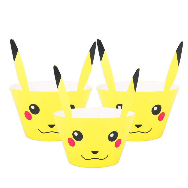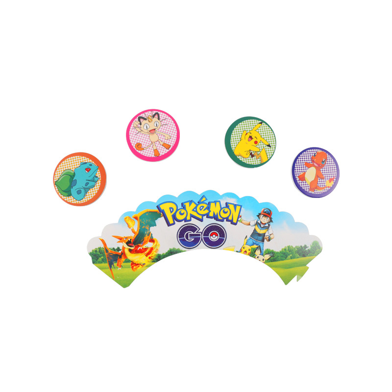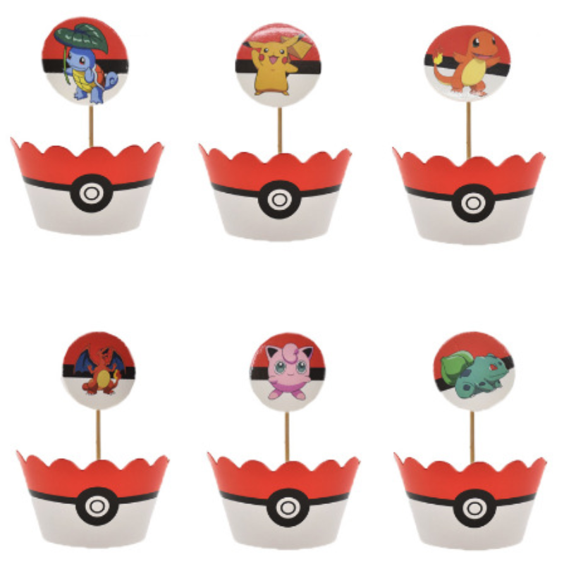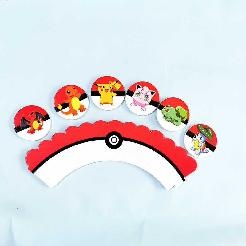 Детские Свадебные Вечерние Декорации из мультфильма «Пикачу», «Покемон», «День рождения», «кекс», «десертный стол», 12 вставок + 12 бордюровДиаметр обода и Нижняя окружность: 5,5 см
