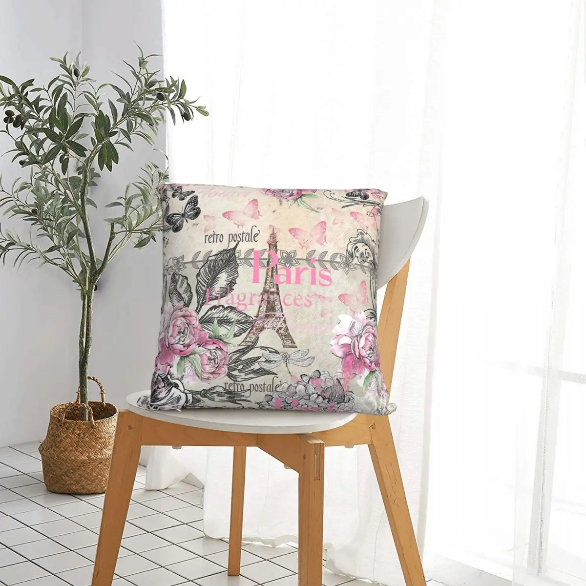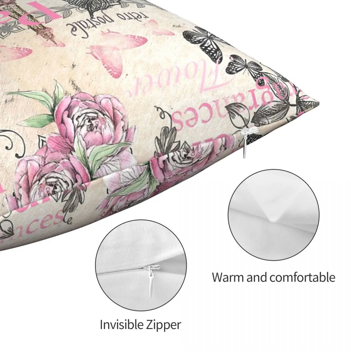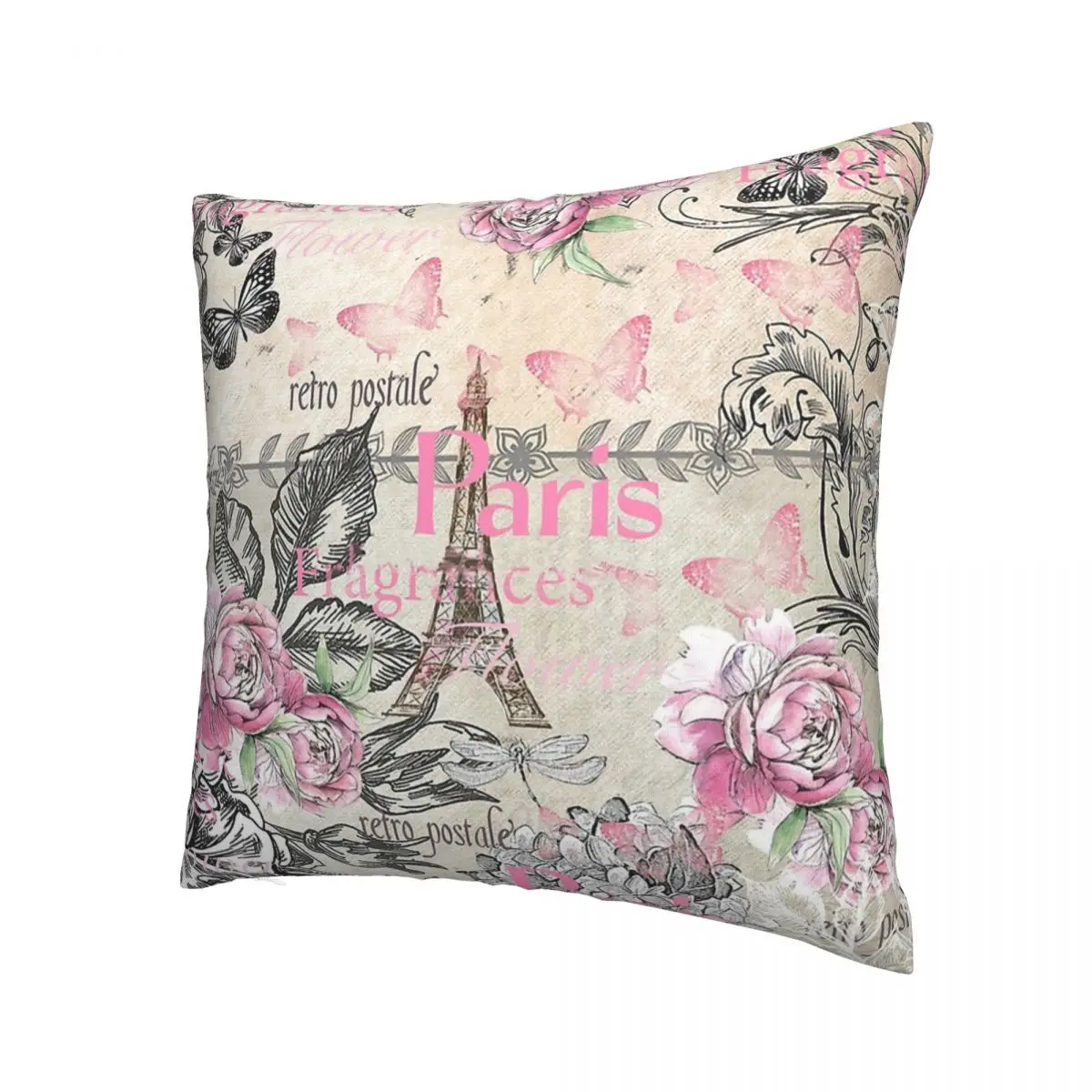 Отзывы о Элегантная розовая черная декоративная подушка с цветочным коллажем и Эйфелевой