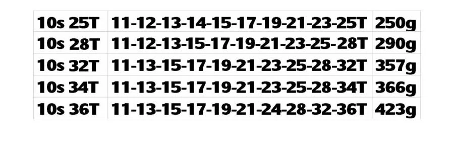Тип: 10s 11-25T/11-28T/11-32T/11-34T/11-36T