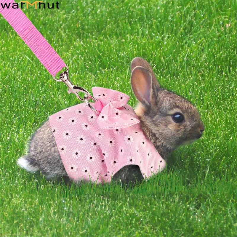 Милый поводок для кролика: принт с цветком и дизайн с бантом. Ваш кролик будет выглядеть восхитительно и мило в этой одежде, красивая одежда для повседневной ходьбы, платье для праздника