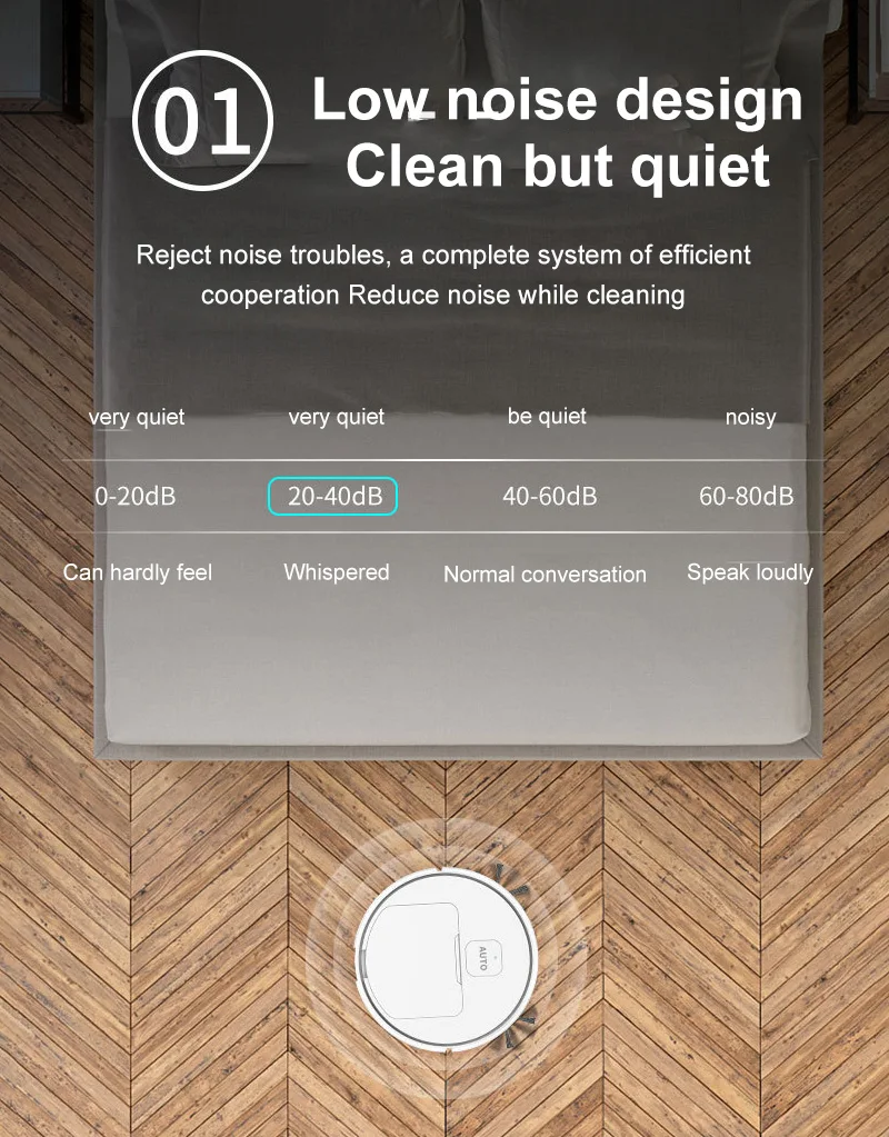 4. Function: One-button start, sweeping, mop, vacuum cleaner, USB charging, universal driving, automatic obstacle avoidance, anti-fall, low noise and intimate, low repeatability, high coverage.