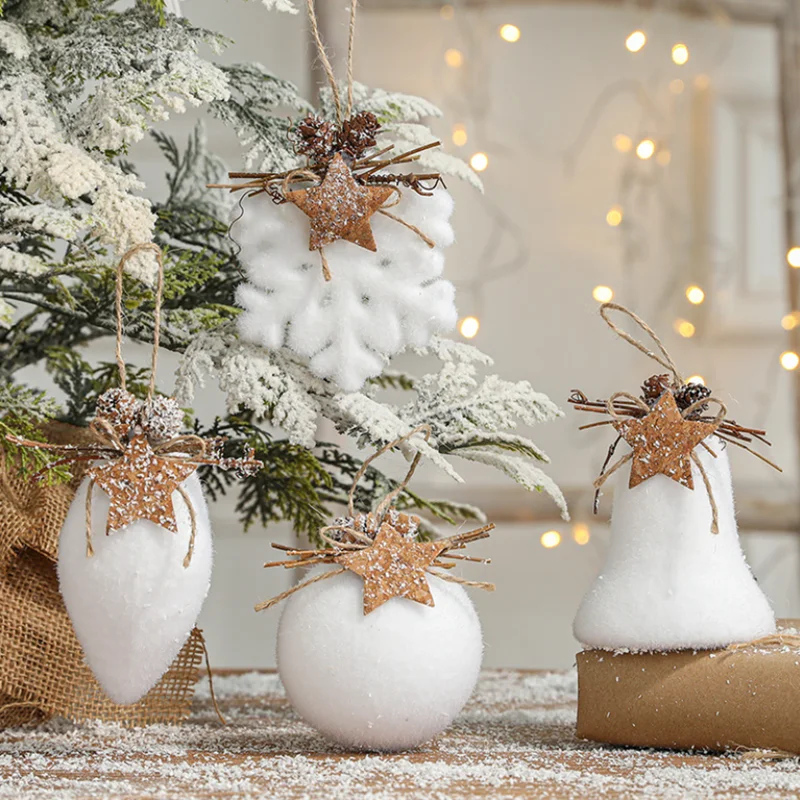 Белый Рождественский шар диаметром 80 мм, снежинка, колокольчик в форме капли воды, украшение для рождественской елки, подвесные елочные Подвески, Подарочные шары