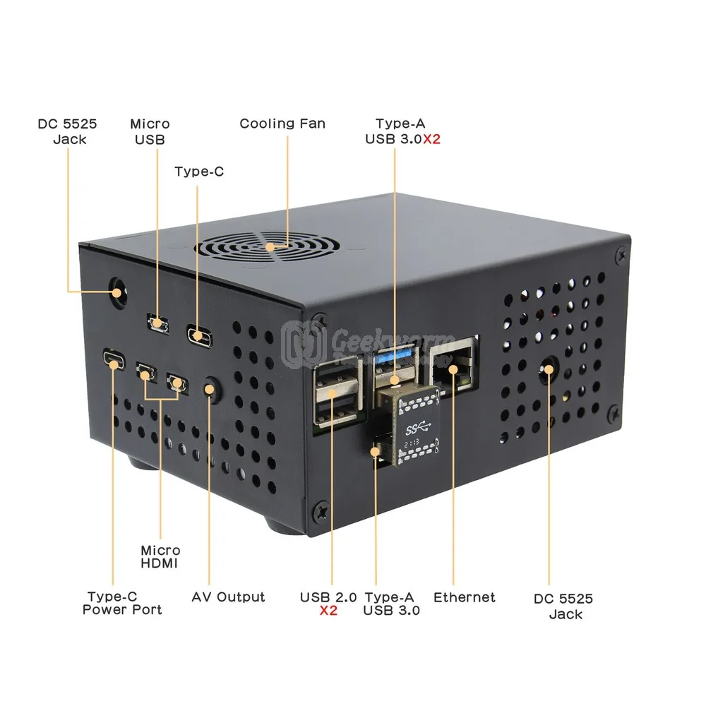 Запасной слот для X735 DC порта питания, порт microusb и порт питания Type-C