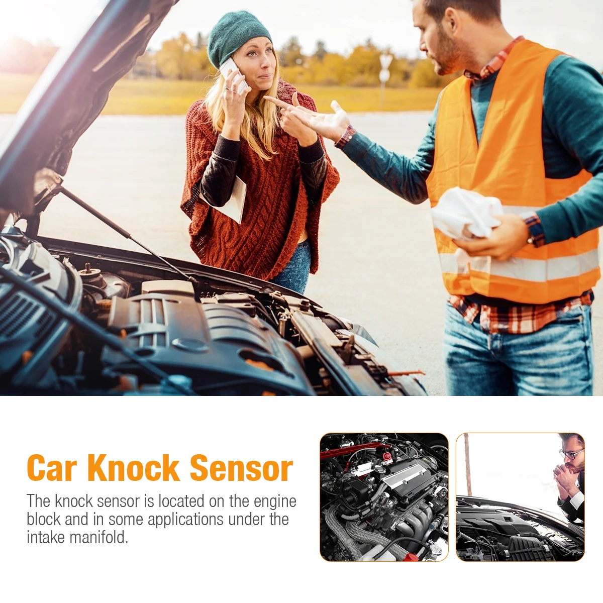 Датчик удара расположен на блоке двигателя и в некоторых приложениях под впускным коллектором.