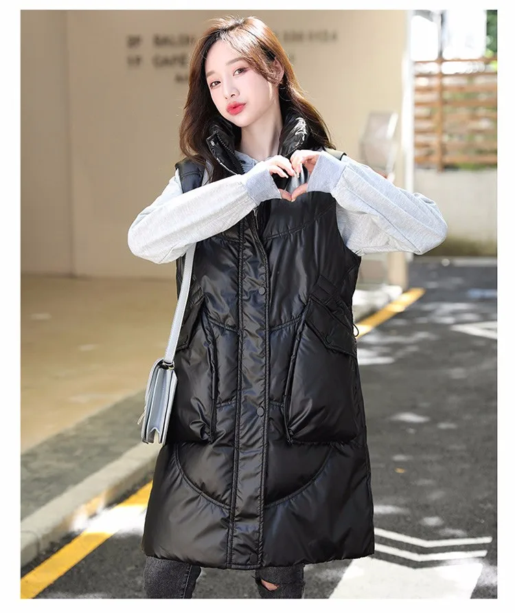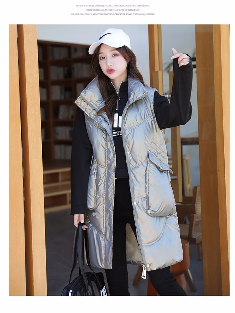 Отзывы о Lusumily женский зимний длинный жилет Повседневный теплый воротник-стойка яркий
