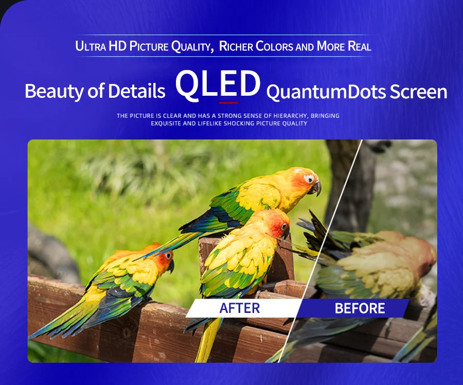 + QLED (хорошее видение под каждым углом) экран с разрешением 1280*720!