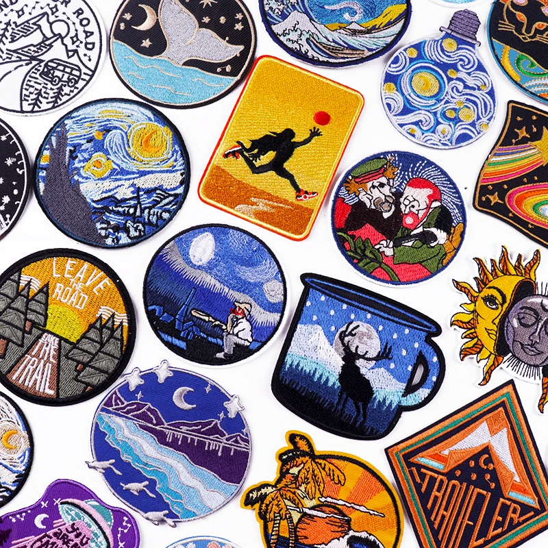 Ван Гог волны вышивка патч на открытом воздухе путешествия патчи на одежду полосы DIY горы патчи для одежды наклейки значки