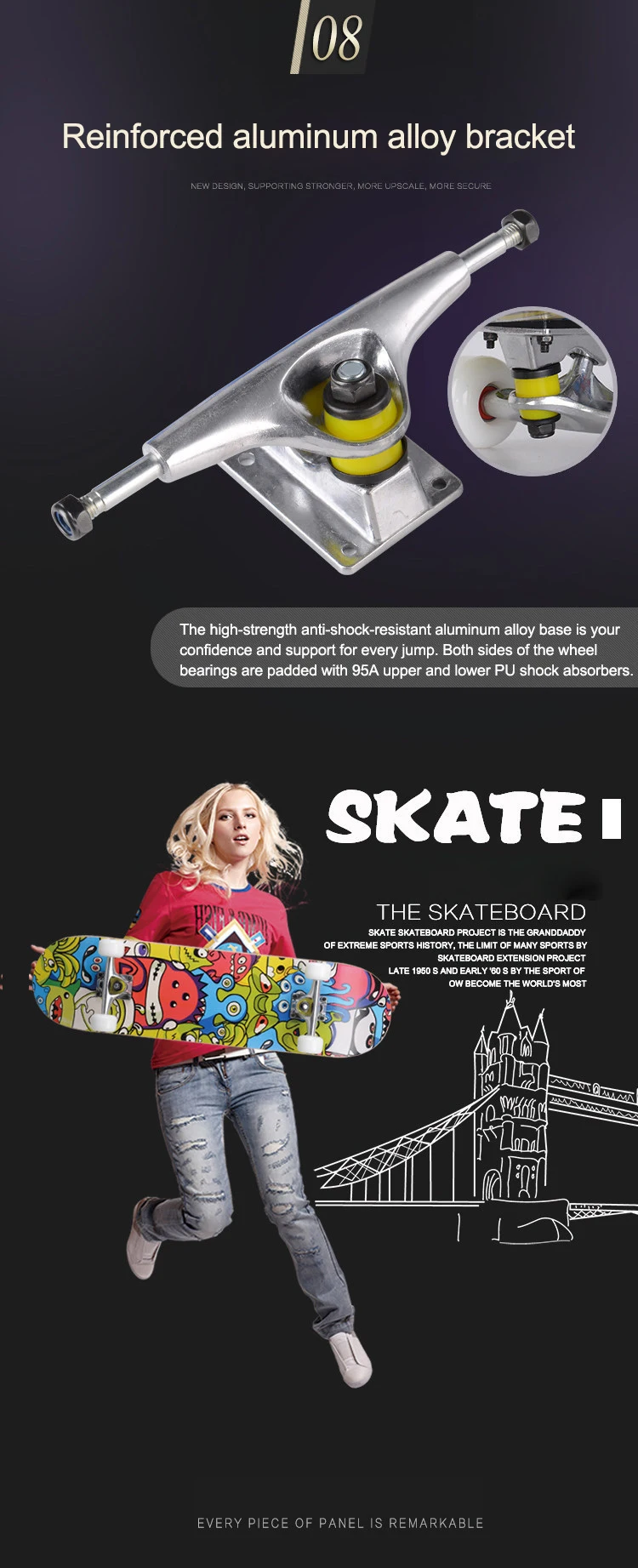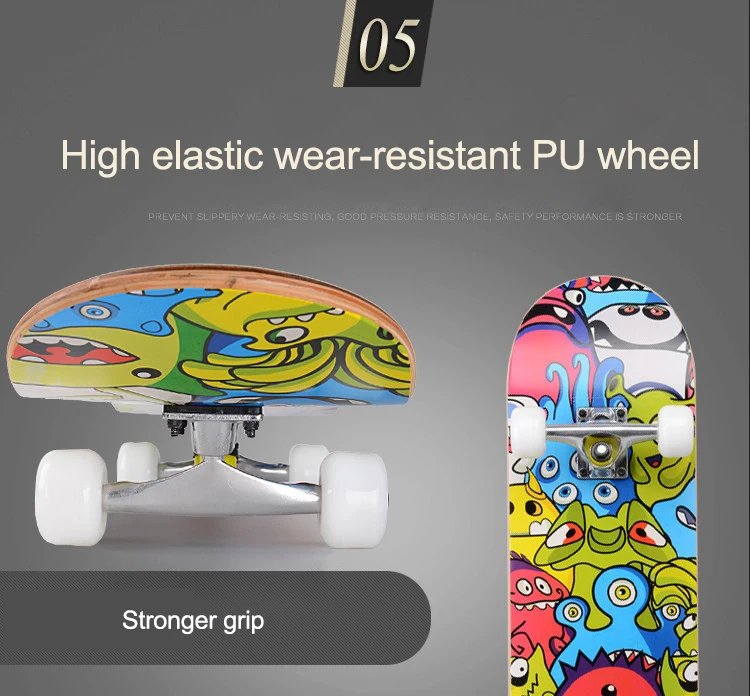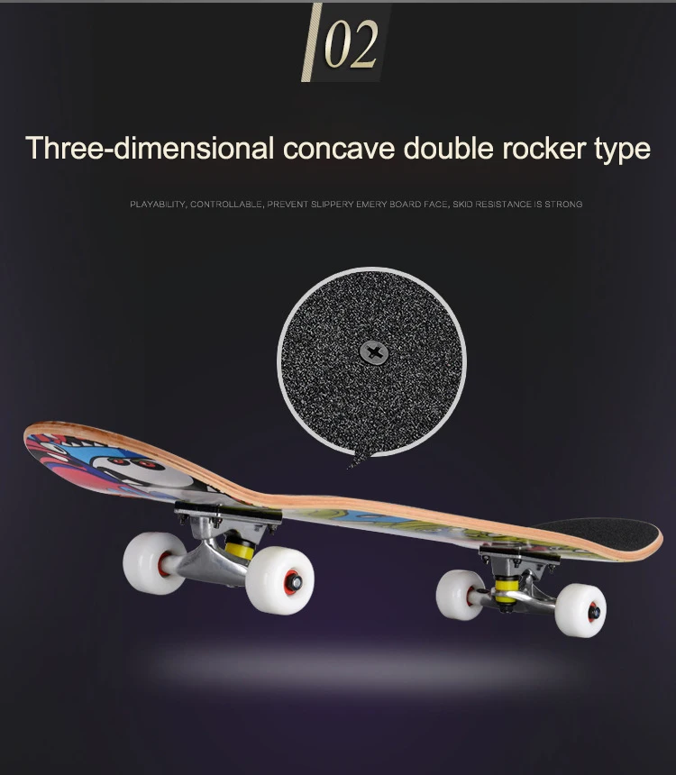 -Вогнутая конструкция с двойным наклоном больше подходит для начинающих скейтбординга, хорошая игровая способность.