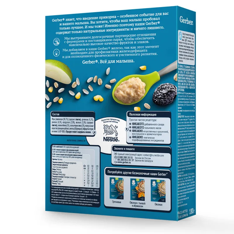 Gerber knows that the introduction of additional products is a special event for you and your child. You want your baby to try only the best. And so are we! That's why Gerber Kasha contains only natural ingredients and nothing superfluous.