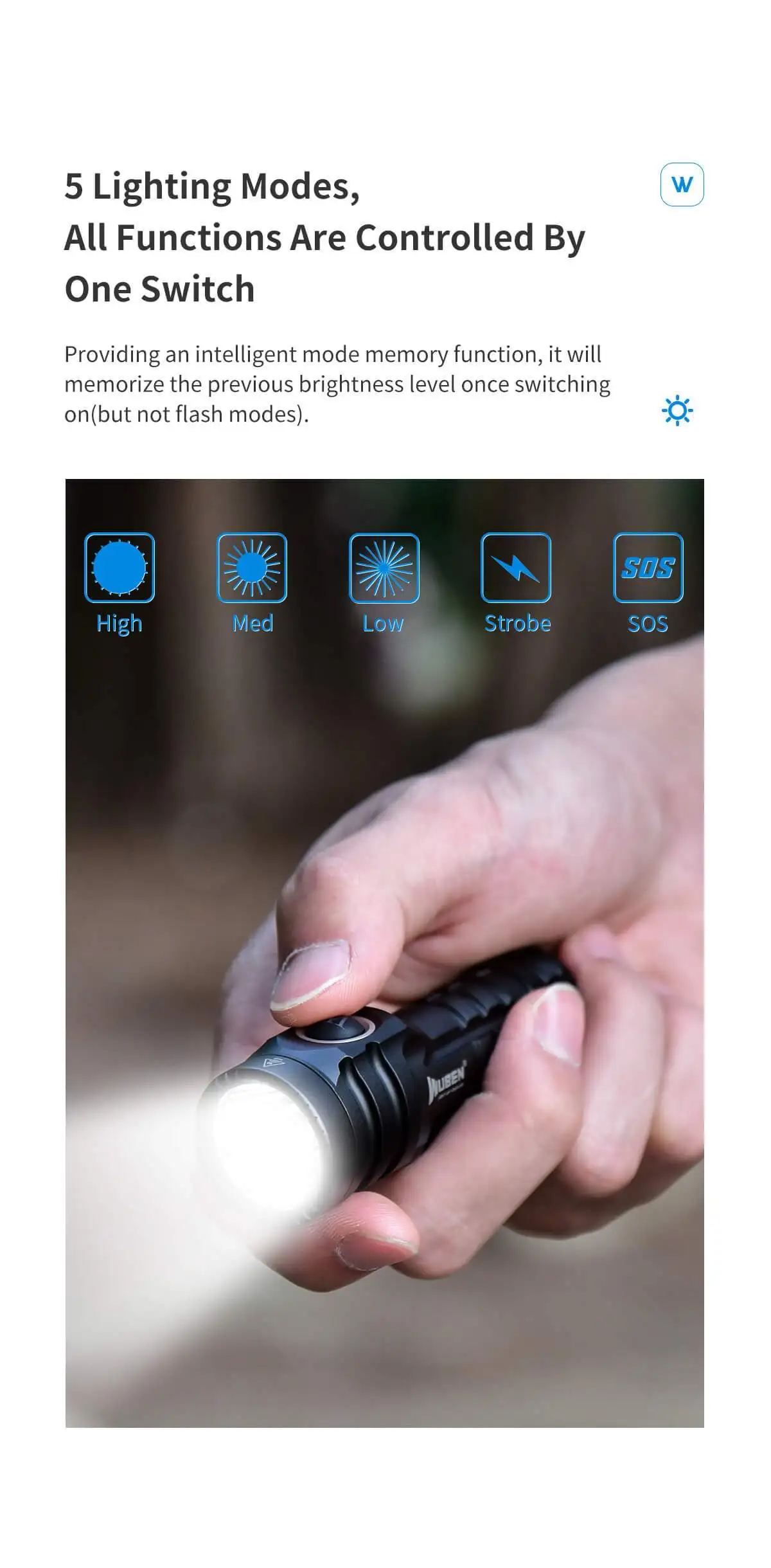WUBEN E6, широко известный как «маленькая стальная пушка», является фонариком EDC с высоким люменом. Используется один кусок CSLPM1.TG светодиодный, максимальный выход достигает 900 люменов и 410 метров расстояния луча. Питание от аккумулятора AA и совместимость с сериями 14500. Благодаря тонкому мастерству, он будет и должен быть шокирующим для любителей фонарика.