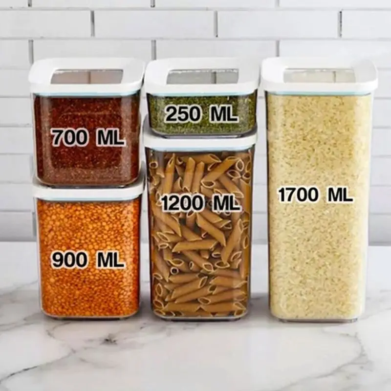 Это группа продуктов, которая добавит элегантности и разницы в вашей кухне и с высококачественными контейнерами для хранения, предназначенными для безопасного хранения продуктов. Сохраните все продукты свежими, такими как печенье, бобовые, чай, чипсы и т. Д. Добавьте цвет к вашей кухне со стильным внешним видом. Вы можете безопасно хранить свои специи.