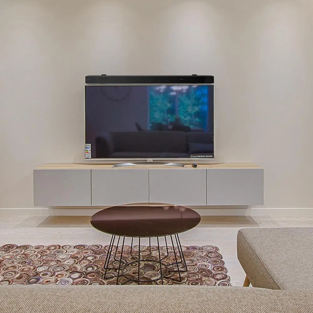 Точки пули:1. Настенное крепление для саундбара: это специально разработанная настенная стойка для Саундбар. Вы можете установить Саундбар под телевизором, чтобы освободить пространство телевизора и создать чистую и аккуратную телевизионную стену.