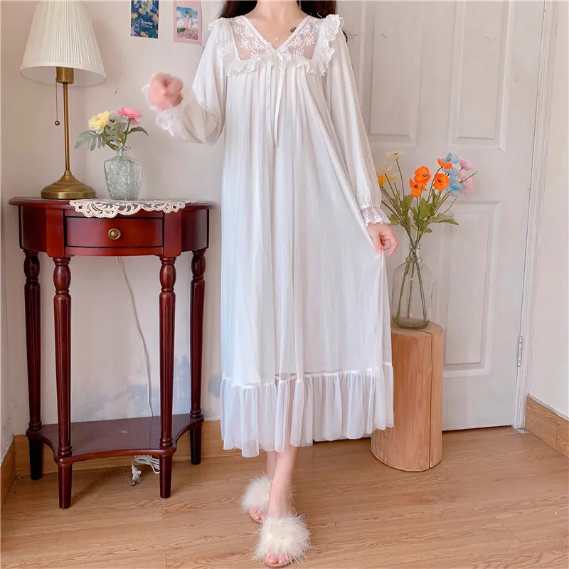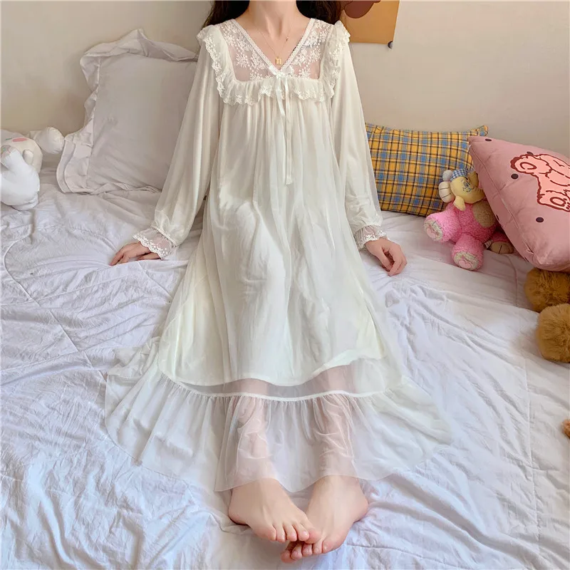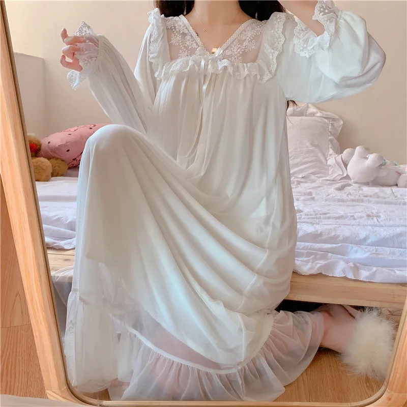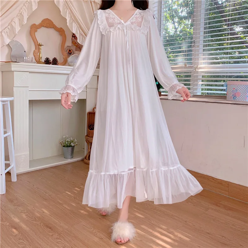 Отзывы о Милая женская одежда для сна платье принцессы винтажная белая сетчатая ночная