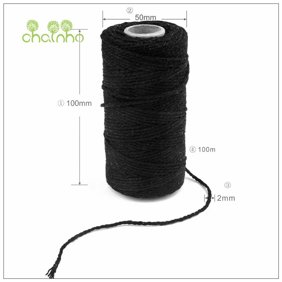 Chainho,100 метров, сплошная цветная хлопковая веревка, 20 цветов в наличии, диаметр 2 мм, швейная нить/Сделай сам ручная работа, упаковочные аксессуары