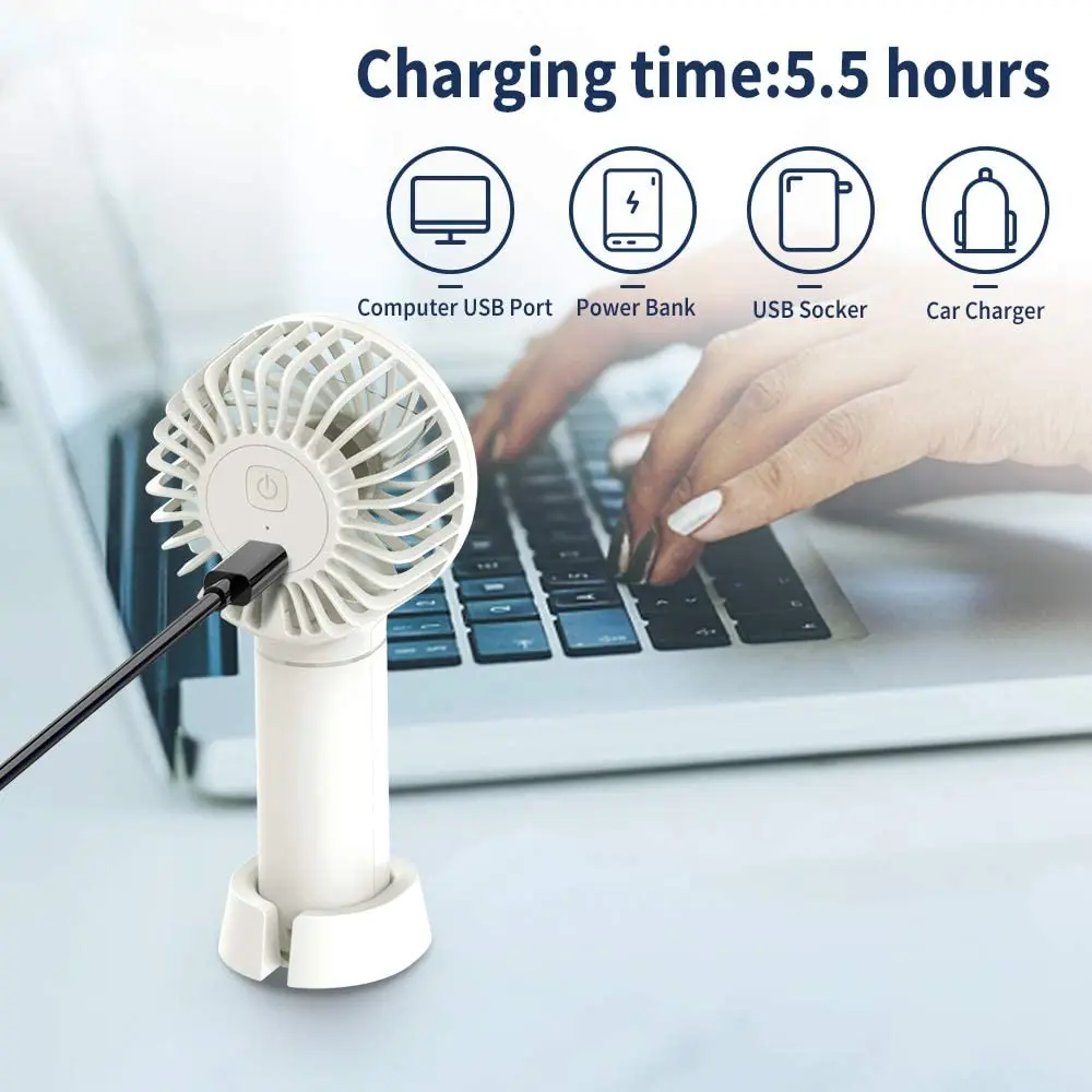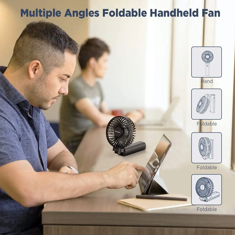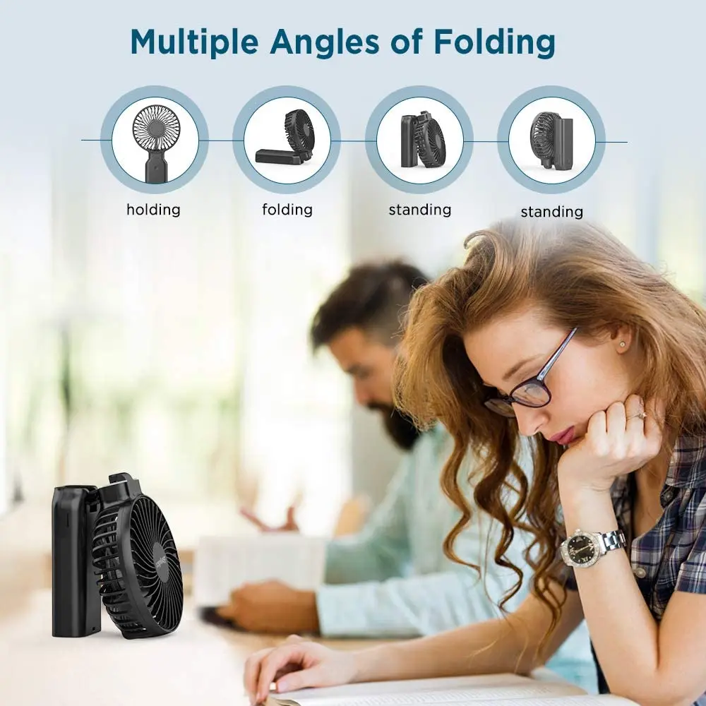 Встроенная перезаряжаемая батарея для легкой зарядки и использования. Емкость увеличена до 5000 мАч в течение 4-20 часов беспроводного использования. Портативный Персональный вентилятор со складной ручкой для удобного использования и транспортировки в карманах и сумочках.