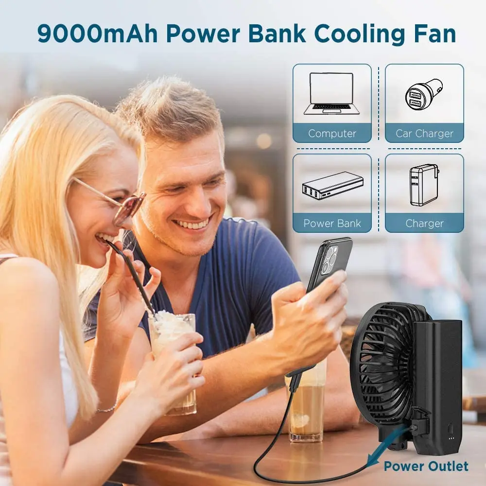【Можно использовать как powerbank】 когда вы выходите, этот портативный вентилятор может использоваться как powerbank, когда ваш телефон не имеет энергии