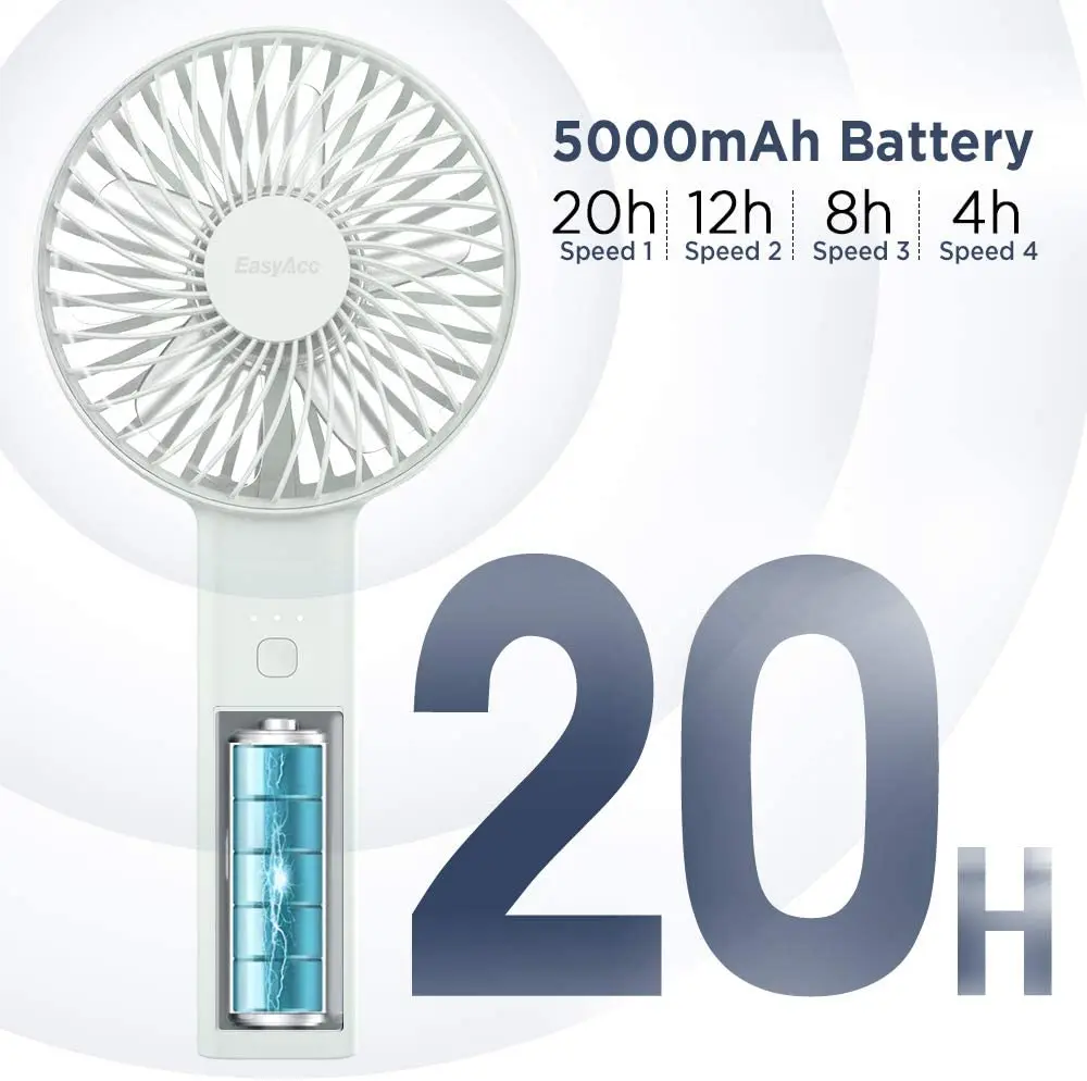 EasyAcc 5000 мАч Мини USB портативный вентилятор с одним касанием выключение питания вентилятор Настольный вентилятор 4-20 часов 4 скорости управления для дома на открытом воздухе