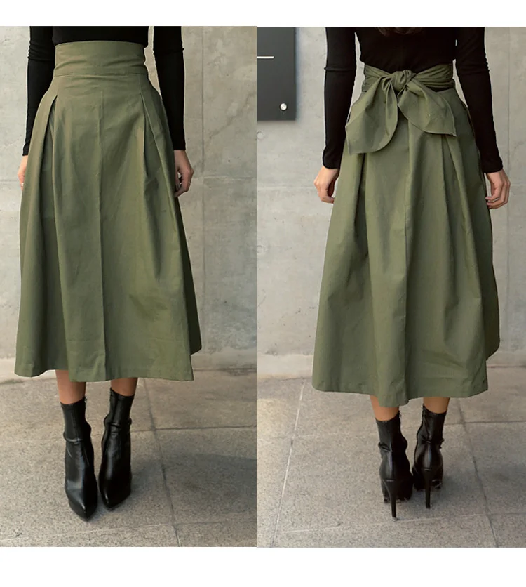 Отзывы о LANMREM 2022 Осенняя Новая военная зеленая юбка для женщин с бантом подходящая ко