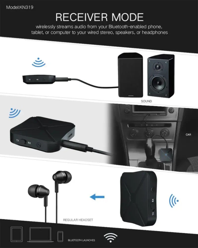 Отзывы о Аудиоресивер KN319 2 в 1 Bluetooth 5 0 передатчик беспроводной адаптер USB 3 мм AUX для ТВ