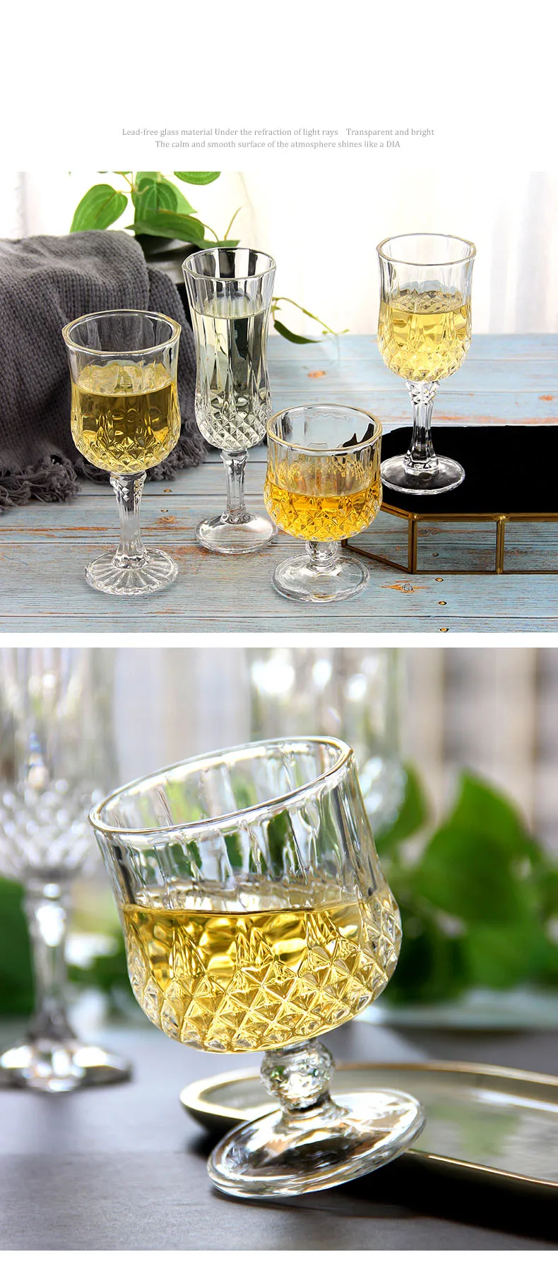 2. Бессвинцовый материал из хрустального стекла, гарантия высокого качества, нетоксичный и безвредный, также может использоваться для бокалов высокого качества, коктейльных бокалов, виски, водочного стекла, это обязательный выбор для баров, вечеринок, семей, ресторанов, фестивалей, подарков.