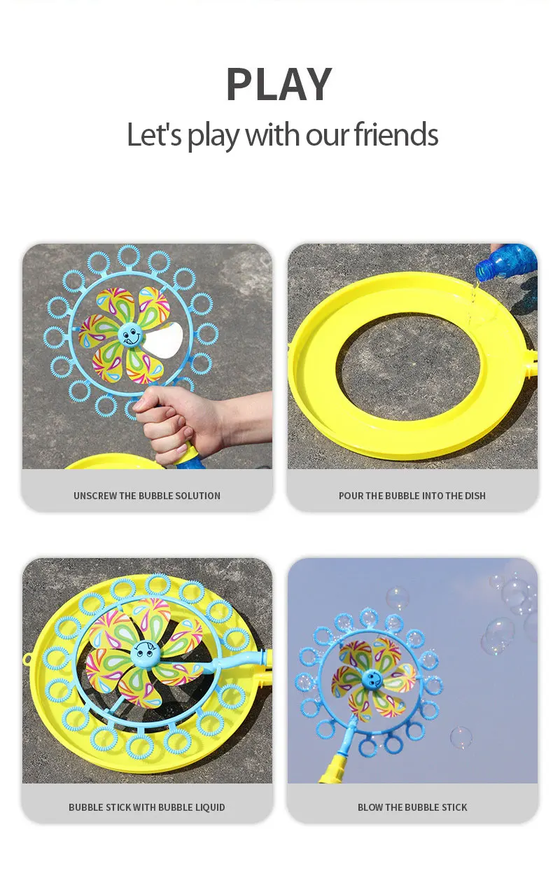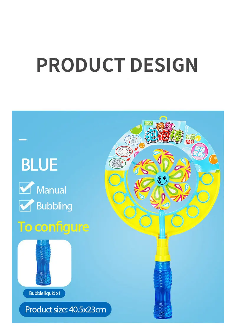 Ветряная мельница-это два в одном, а милый и интересный дизайн более популярен среди детей; Зубчатый дизайн, лучшая Адсорбция пузырьковой жидкости, больше пузырьков. Удобная и гладкая ручка без гребли.