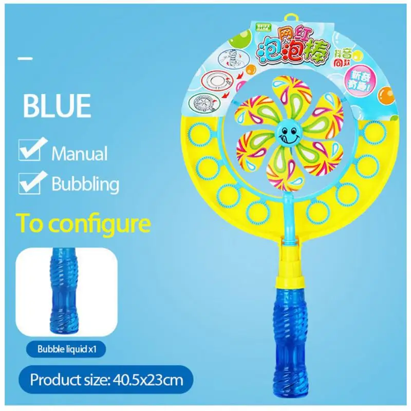 Много пузырьков, ветряная мельница, без батарей. Можно выбрать два разных цвета, 15 пузырчатых отверстий и больше пузырьков. После того, как пузырчатая палочка запачкается жидкостью, она может качаться ветром, чтобы сделать пузырьки.