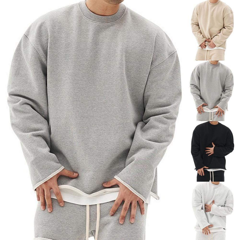 Мужские свитера с круглым вырезом и длинным рукавом, однотонные свободные однотонные универсальные пуловеры, Мужская толстовка, уличная одежда