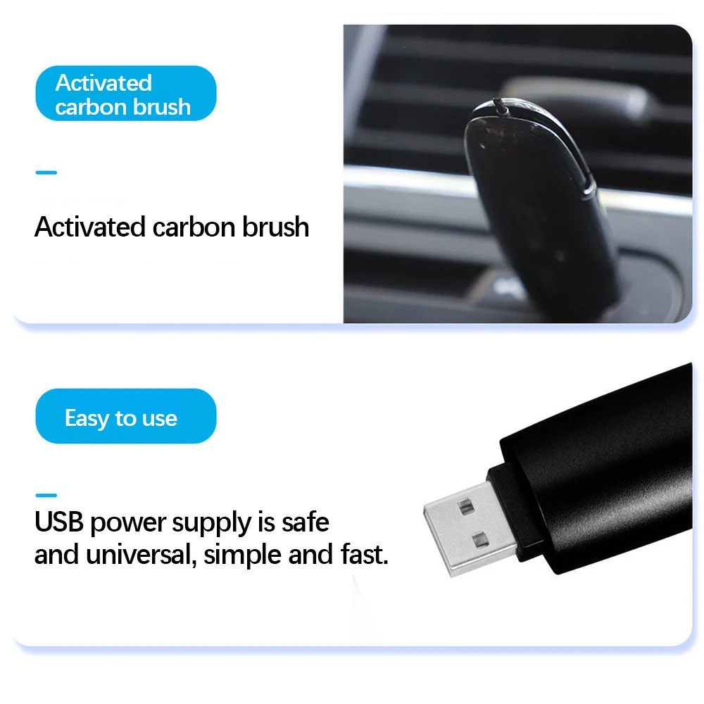 2. Автомобильный USB очиститель отрицательных ионов маленький и портативный, просто подключите его к автомобильному usb-порту, чтобы начать очистку.