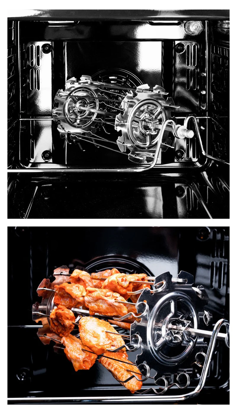 1. Электрическая печь должна быть оснащена вращающимся стержнем для гриля, иначе решетку для гриля нельзя использовать. Клетки для гриля, продаваемые на нашем заводе, не имеют вращающихся стержней для гриля и крепежных винтов (в комплект входит конвекционная печь/электрическая печь!)