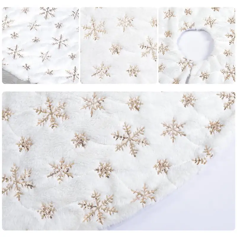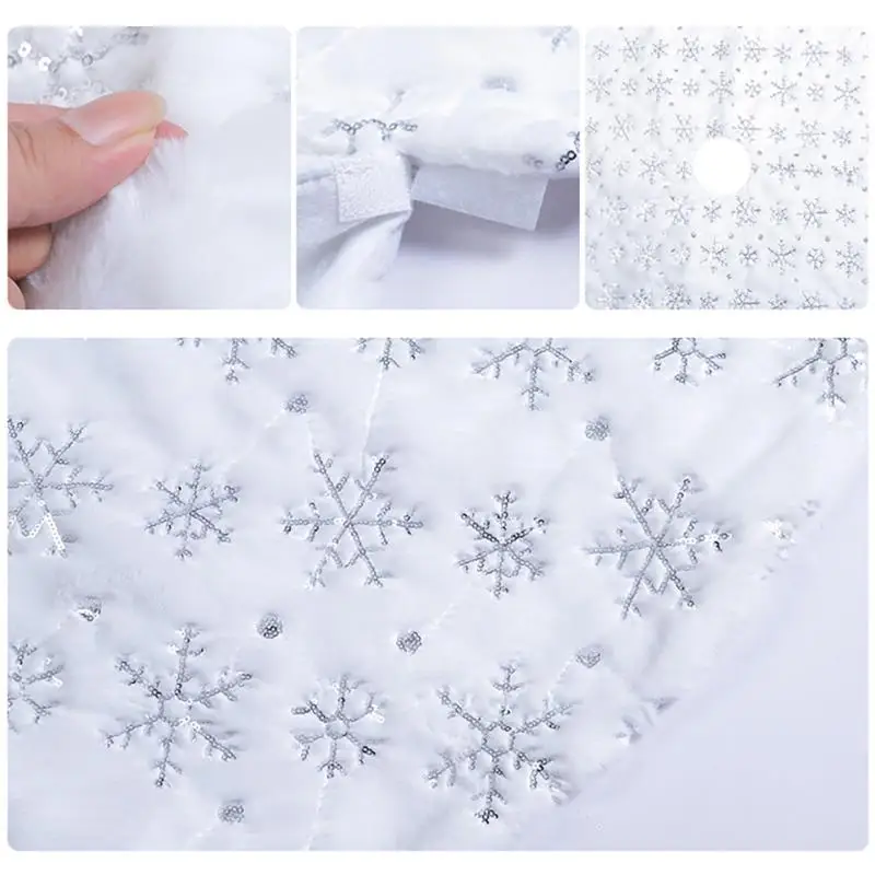 Это роскошное и теплое платье для рождественской елки с вышитым блестками рисунком снежинки. Эта юбка очень подходит для деревьев любого размера, от маленьких деревьев до больших деревьев, а также подходит для использования в помещении и на открытом воздухе.
