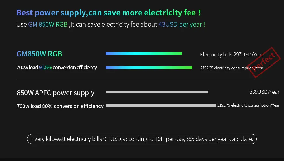 【 80 + золотой коэффициент мощности 】 80 плюс Золотой сертификат. Источник питания имеет наилучшую эффективность 92.24% коэффициент конверсии в среде сетки 220 В. Намного выше, чем 80 плюс стандарт золота 80%. Из-за того, что источник питания в основном работает 24/7, 92% коэффициент конверсии помогает вам сэкономить деньги на счете за электричество и защитить окружающую среду.