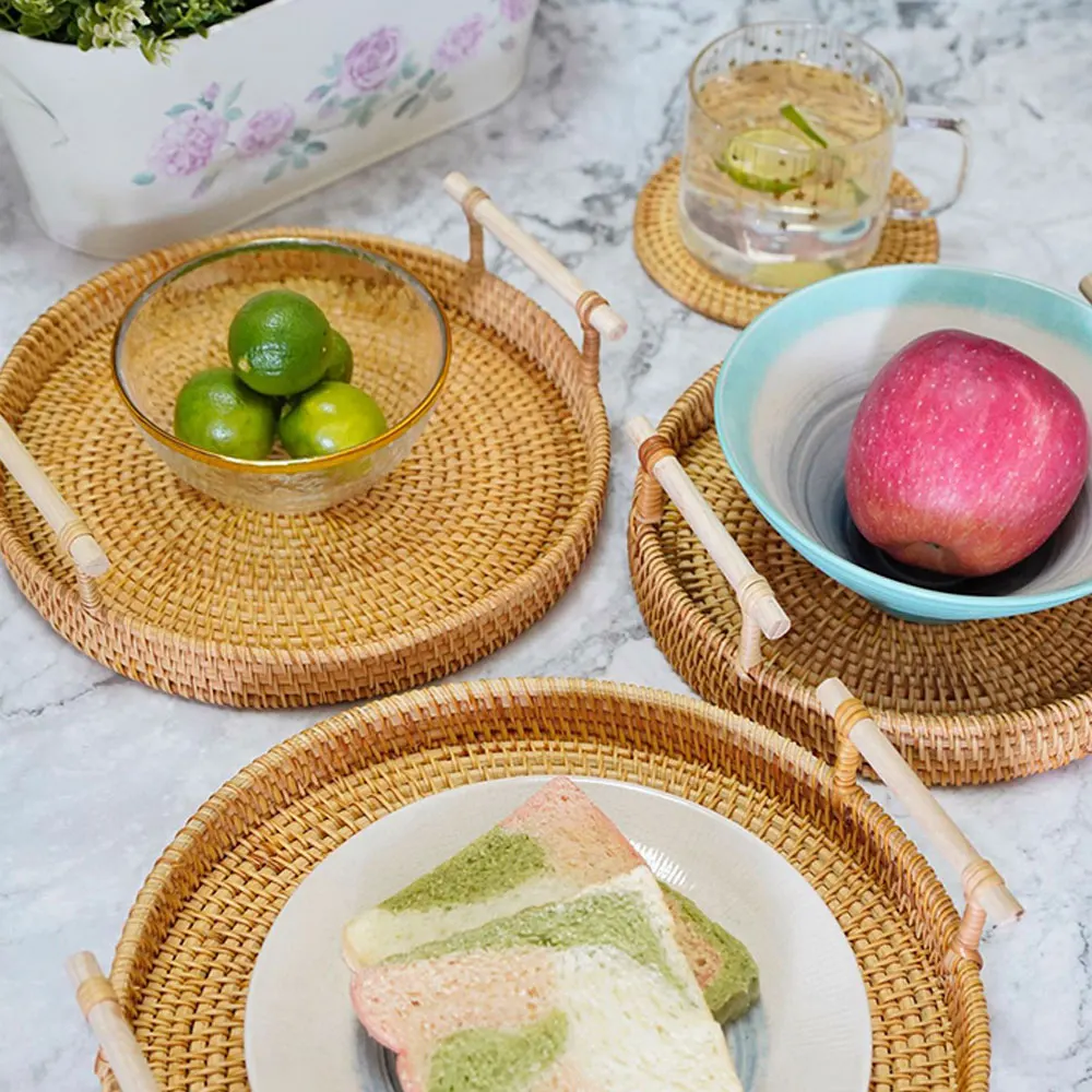 Отзывы о Ротанговая ручная круглая сервировочная тарелка для хранения еды с деревянными