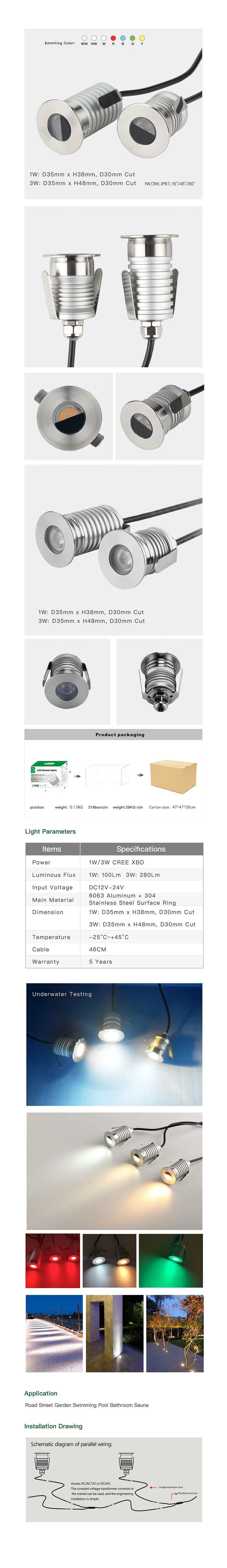 Лампа 1 Вт 3 Вт IP67 IP68 CREE светодиод XBD Точечный светильник 12V-24V мини лампа Точечный светильник сада Бассейн лестницы вечерние Ванная комната Светильник для сауны светильник Инж
