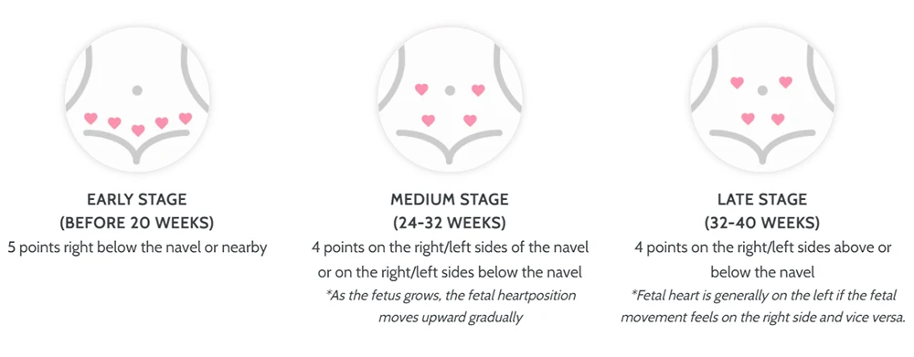 * По мере роста плода сердцебиение плода постепенно движется вверх