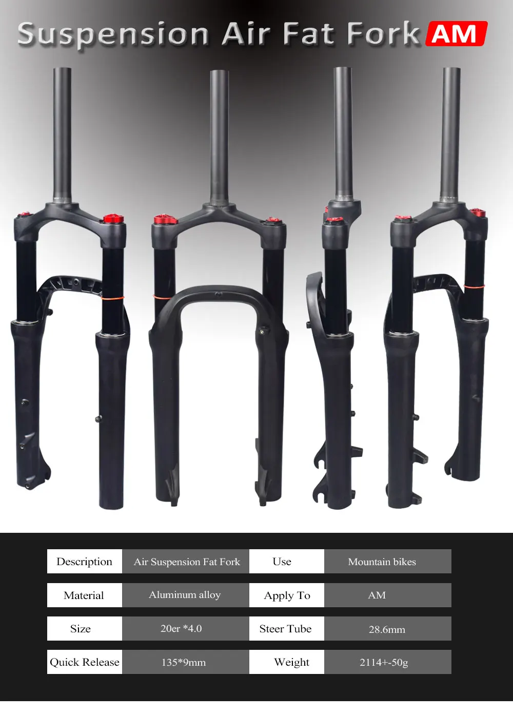 AIRWOLF Fat Bike Вилка 26er/20er пневматическая подвеска вилки Stragiht Вес трубки 2114 г QR 135*9 мм ручной замок AM MTB велосипедные вилки