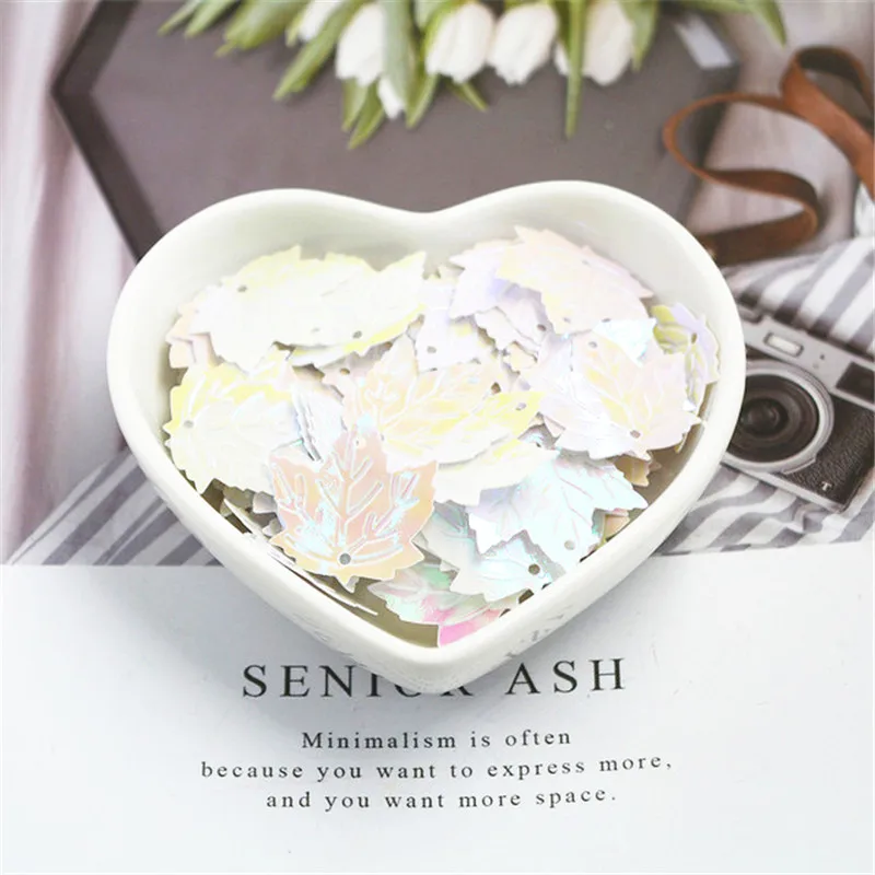 Отзывы о 50 шт./упак. 22 мм кленовые лазерные блестки с листьями ПВХ пайетки для шитья