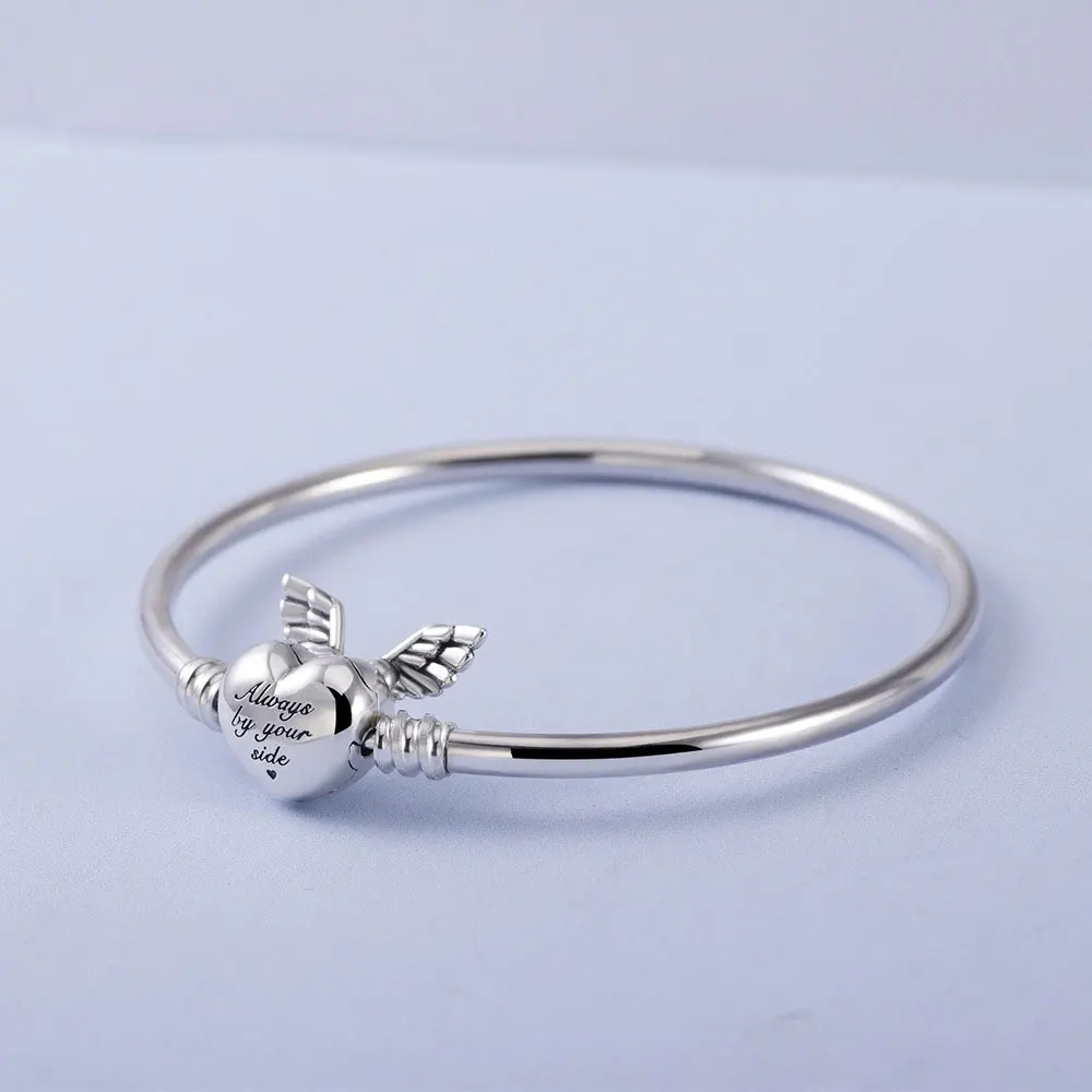 Отзывы о Женский гладкий браслет из серебра 925 пробы подвеска крыло с сердцем и застежкой